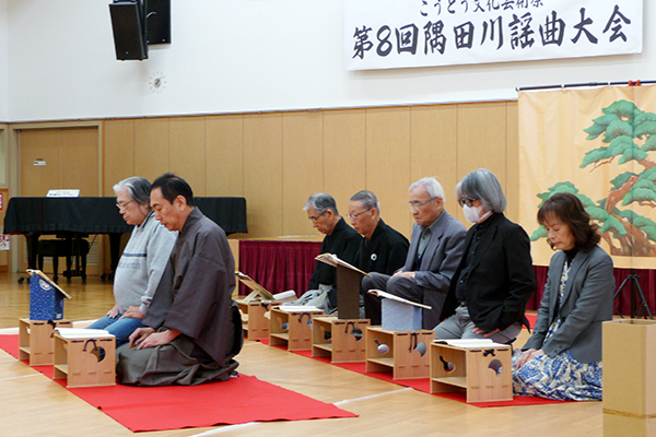 本謡曲大会は、隅田川両岸の謡曲愛好者の皆様が交流を深め、 合同で謡曲、仕舞を楽しもうと、平成29年にスタートしました。 本年大会も盛況の内に幕を閉じました。多数のご参加・ご来場ありがとうございました。