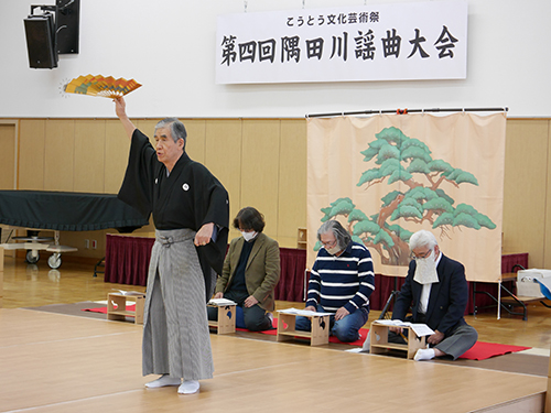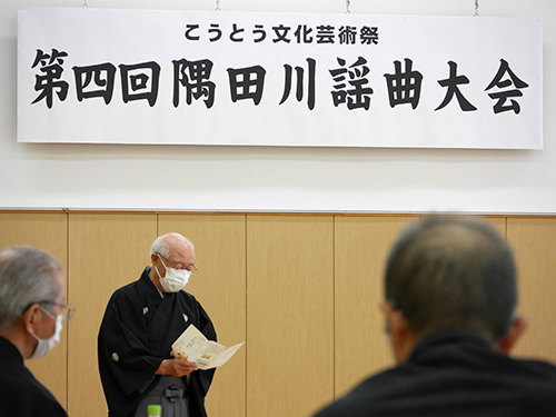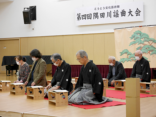 本謡曲大会は、隅田川両岸の謡曲愛好者の皆様が交流を深め、 合同で謡曲、仕舞を楽しもうと、平成29年開始しました。 昨年はコロナの影響で実施できませんでしたが、本年は無事開催する運びとなりました。